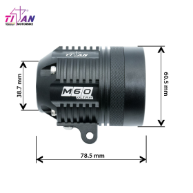 Tổng thể body của đèn trợ sáng có kích thước nhỏ gọn với tổng chiều dài của đèn trợ sáng Titan Moto M60 Ultra là 78.5mm và tổng đường kính chỉ 60.5mm. Kích thước nhỏ gọn, nằm gọn trong lòng bàn tay nên không hề gây vướng víu khi lắp lên xe.